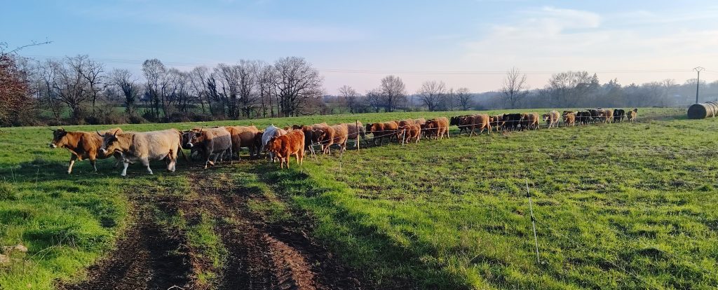 J’ai également introduit un taureau Angus sur la ferme qui s’est enamouré de ces dames, limousines principalement. Les veaux poussent au pré avec leur mère comme des champignons. Ne loupez pas l’occasion d’y goûter lors de la vente de veau d’avril !